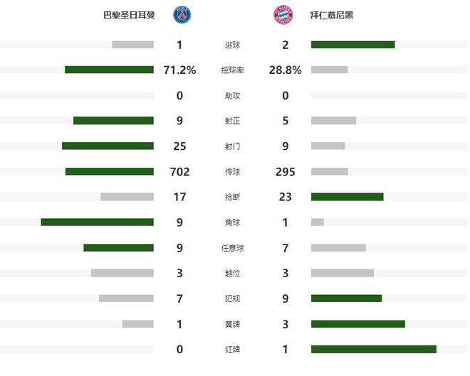 第74分钟,奥利塞后场拿球被抢断,大巴黎顺势形成反击,李刚仁的传中,助攻内维斯侧钩破门,将比分追至1-2,不过接下来的时间,拜仁没有再给大巴黎机会,如愿将2-1的比分保持到了最后。